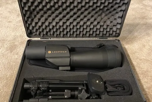 500.00 Leupold Green Ring Sequoia Spotting Scope 15-45x 60mm Jan 22, 2026 - 11:23 AM JUSTIN BIRCH Leupold Green Ring Sequoia Spotting Scope 15-45x 60mm Straight Eyepiece.