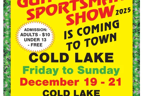 10.00 COLD LAKE GUN SHOW Dec 13, 2025 - 4:18 PM huntmania COLD LAKE GUN SHOW DEC 19-21 2025 COLD LAKE AGRICULTURAL EXHIBITION HALL