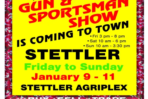 10.00 STETTLER GUN SHOW JAN 9-11 Dec 28, 2025 - 1:55 PM huntmania STETTLER GUN SHOW JANUARY 9-11 2026 STETTLER AGRIPLEX HALL