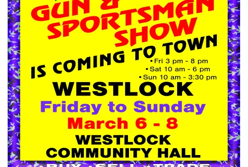 10.00 WESTLOCK GUN SHOW MARCH 6-8 2026 Dec 13, 2025 - 4:38 PM huntmania WESTLOCK GUN SHOW MARCH 6-8 2026 WESTLOCK COMMUNITY HALL