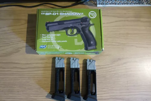 200.00 $200 shipped! CZ Sp-01 75 shadow pistol package Sep 8, 2025 - 10:01 AM Airsoft2023 Here i have a brand New CZ Sp-01 75 shadow airsoft pistol and 3 15rd magazines *2* are pretty muc