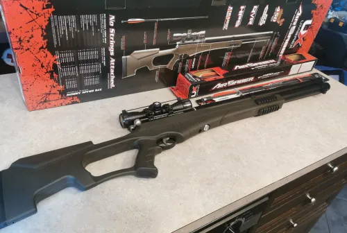 570.00 Umarex PCP Air Saber with Axeom Scope & 9 Bolts Feb 21, 2026 - 5:29 PM Maranatha Umarex PCP Air Saber with Axeom 4x32 Scope.