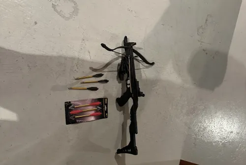SOLD 75.00 crossbow pistol Jan 11, 2026 - 7:43 PM JimOttawa Bolt crossbow pistol. three field tips and three hunting tips.