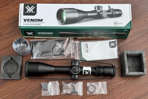 700.00 Vortex Venom 5-25x56 FFP mrad Mar 1, 2026 - 6:55 AM Devil_Mike selling this Vortex Venom 5-25x56 FFP Mrad NIB what's in the box with the riflescope: