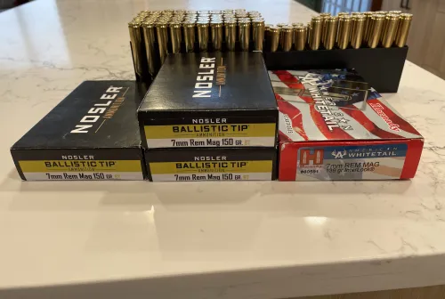 150.00 7 Remington Mag Ammo Apr 22, 2026 - 7:54 PM Samantha999+ 35 rounds nosler ballistic tip 150 grain 24 rounds once fired nosler brass
