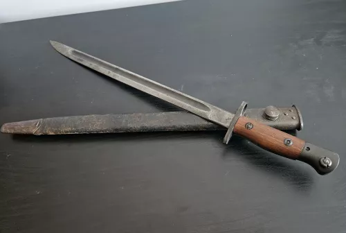 190.00 WWII Australian Lee Enfild Bayonet Aug 21, 2025 - 7:15 AM dmitrybo Australian P.07 Lee Enfield bayonet and scabbard. Marked 1944. WWII period.