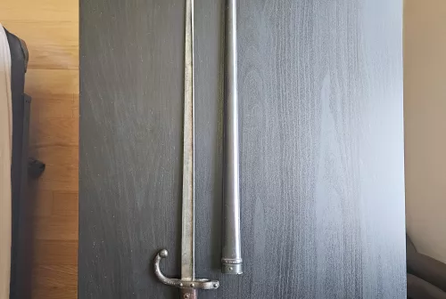 220.00 French Gras Model 1874 Bayonet Matching Numbers Aug 21, 2025 - 7:15 AM dmitrybo French Gras Model 1874 Bayonet. Matching numbers on bayonet and scabbard.