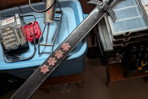 SOLD 25.00 Sword + Leather Sheath - Metal Blade and Handle Mar 13, 2026 - 1:04 PM Vantage007 Sword with leather sheath, metal Blade and handle.