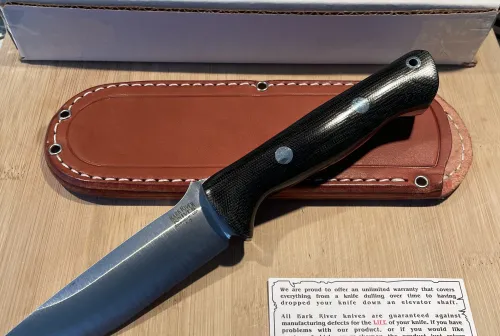275.00 Bark River Bravo 1 knife, A2 steel, New! Mint! Impeccable! Mar 13, 2026 - 5:39 AM Jumpinbean Selling a Bark River Bravo 1, A2 steel, black canvas micarta,