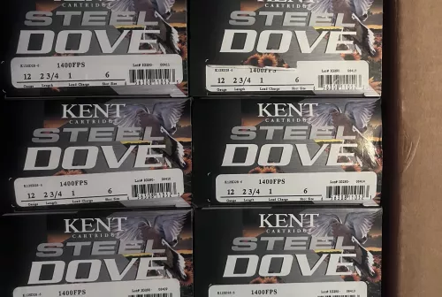 25.00 Kent 12 ga 2 3/4 steel dove ammo Sep 26, 2025 - 6:20 PM jayden.k1 Kent steel dove 1oz #6 shot 12 ga 2 3/4” shot gun ammo