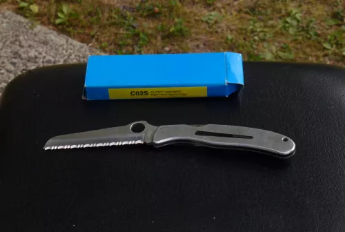 275.00 Rare Vintage Spyderco mariner Sep 9, 2025 - 12:21 PM Waynesgpost 98 Spyderco Mariner Salt in very good condition blade is serrated never sharpen