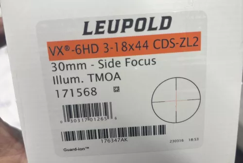 2975.00 Leupold VX-6HD 3-18x44 CDS-ZL2 Sep 15, 2025 - 3:47 PM reggie28 Leupold VX-6HD 3-18x44 CDS-ZL2 30MM. Side Focus Illum. TMOA