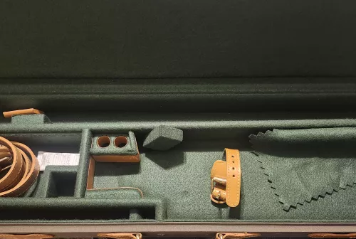 600.00 Vintage Canvas and Leather Shotgun Hard Breakdown Case Nov 12, 2025 - 11:03 PM Fine_Sht-Guns Vintage break down case with a canvas finish and leather trim.