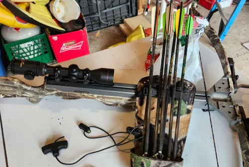 500.00 Excalibur crossbow with scope Sep 8, 2025 - 9:23 AM Gill70 Excalibur crossbow with scope sling case 7 razor head arrows 5 practice arrows practice block and