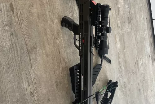 150.00 Killer instinct crossbow Sep 10, 2025 - 10:58 AM sam2025 Killer instinct crossbow with target and 3 broad heads and some arrows