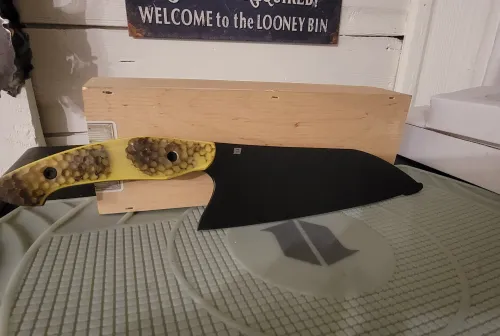 450.00 EJ Work Custom Beehive Chef Knife Prototype Jan 9, 2026 - 11:35 AM vanislemoto EJ Work Custom Beehive handle Chef Knife Prototype, brand new unused. 1 of 1