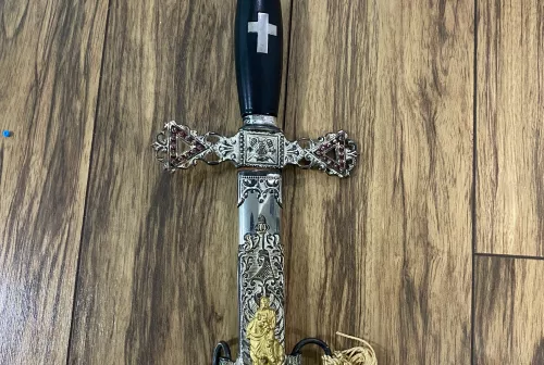 425.00 Freemason knights Templar sword Nov 11, 2025 - 7:08 PM matt_head Masonic knights Templar ceremonial sword made by henderson ames co between 1893 and the ea