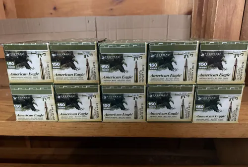 90.00 American Eagle 5.56 x 45mm 62 GR FMJ Apr 8, 2026 - 11:34 AM zanpole Sealed boxes of 150 and 120 rounds available for pick up in the Peterborough area or willing to m