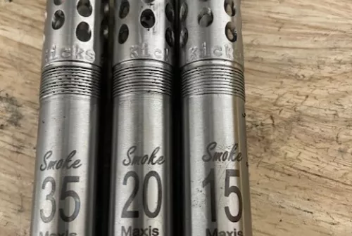 150.00 Kick’s Industries Smoke Chokes Competition 12ga. Choke Tubes Sep 21, 2025 - 1:55 PM Gdkmedic Up for sale is three choke tubes. Used very little. Shipping included