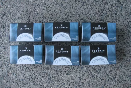 60.00 Federal Champion .22 Ammunition - Victoria Nov 13, 2025 - 8:49 AM rfo1 Selling- six bricks of factory fresh Federal Champion .22 long rifle ammunition.