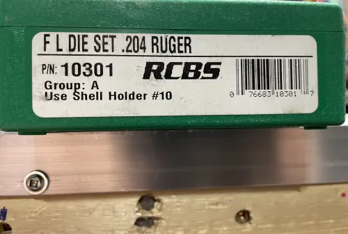 60.00 RCBS Full Lenght 204 Ruger dies Jan 7, 2026 - 6:00 PM dtwn Next to new , lightly used RCBS 204 Ruger full length die set , very clean.