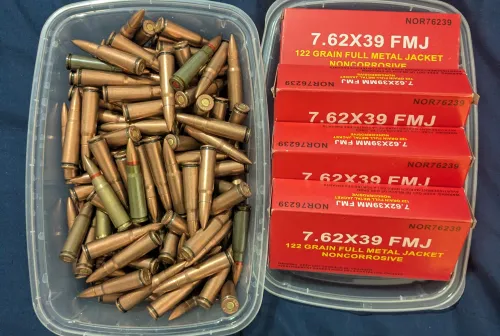 100.00 7.62x39 *220 rounds* Jan 4, 2026 - 6:57 AM JC1 7.62 x 39 ammo. 140 rounds corrosive ammo. 80 rounds red box non corrosive.