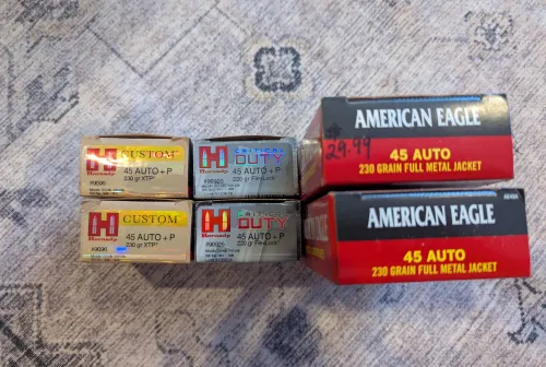 125.00 45 auto ammo fmj and +P Jan 28, 2026 - 4:23 PM poznan 40 x Hornady 230gr +P XTP $36 40 x Hornady 220gr +P Flexlock $44