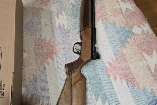 325.00 Browning Gold Aug 25, 2025 - 8:44 PM Hound dog Beautiful air rifle a few handling marks very little nice wood stock they say 800 fps it weighs 8