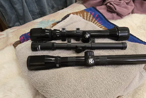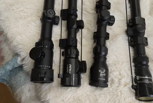 300.00 4 scopes Apr 25, 2026 - 8:59 AM Hound dog Price is for all 4 one nikko sterilng 4x12x40 mountmaster 2nd ravage 3x9x40 wa 3rd piney3x9x40 eg