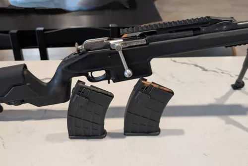 950.00 Mosin nagant Sep 30, 2025 - 7:37 PM Tbird57 Mosin nagant on an archangel stock with a timney trigger and agi bipod