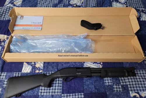 280.00 FOR SALE BRAND NEW IN THE BOX CHURCHILL SHORTY 12 GA PUMP ACTION Oct 26, 2025 - 10:25 PM Jointheride For sale, brand new in the box, 4+1 Churchill shorty 12ga shotgun, pump action, it takes 2 3/4, 3