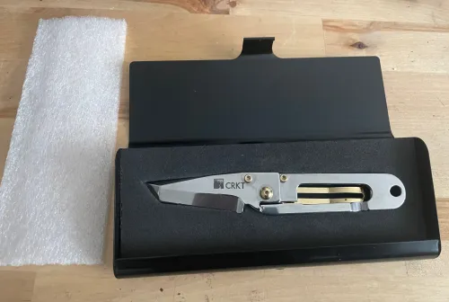 40.00 Vtg CRKT Kiss 5500G Gold 2001 Shot Show Tanto Framelock Folding Pocket Knife Dec 14, 2025 - 10:45 AM QuickDraw45 Vtg CRKT Kiss 5500G Gold 2001 Shot Show Tanto Framelock Folding Pocket Knife
