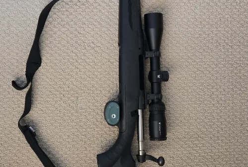 950.00 Savage Axis left hand bolt 30-06 Apr 10, 2026 - 9:26 PM SteveO67 Savage Axis 30-06 left hand bolt action with vortex 3x9x40 crossfire scope. 1 box through this.