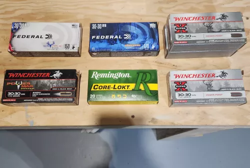 40.00 7 boxes of 30-30 ammo Oct 23, 2025 - 5:11 PM Frank 82 Selling 7 boxes of 30-30 ammo, one box of Winchester power point 170 grains is missing one round