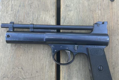 250.00 Pre-war Webley&Scott MkIi straight grip Oct 5, 2025 - 4:05 PM Pre-1898 I have this really nice little hard to find Pre-War ( 1925-1930) Webley and Scott MkII airg