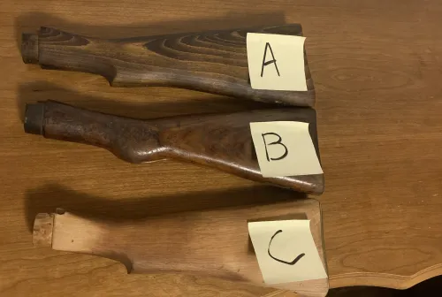 1234.00 No 1 MK 3 SMLE Buttstocks Jan 20, 2026 - 8:35 PM foothillsheaven2015 A few SMLE butt stocks A: Reproduction like new, no hardware long Size $125