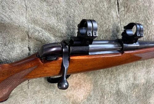 Works as it should, 22 inch barrel, some bluing fading and hunting dings, clip mag, 1 inch rings