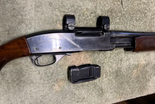 799.00 Remington 760 Gamemaster pump 270 win, I will ship Dec 24, 2025 - 9:54 AM TCVH Works as it should, 22 inch barrel, some bluing fading and hunting dings, clip mag, 1 inch rings