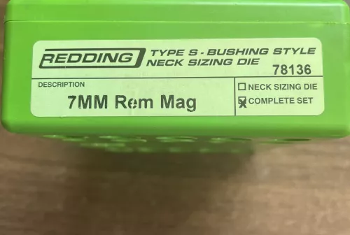250.00 Redding type s-bushing die set 7mm Sep 21, 2025 - 3:23 PM ljb I have a Redding type s-bushing die set in 7mm rem mag comes with a bushing #.308 I will ship it