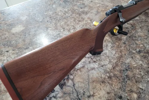 1350.00 Ruger M77 RS .7mm Rem Mag & Nikon 3-9x40 Coyote Special BDC Mar 7, 2026 - 6:52 AM perryvh Ruger M77 RS Mk1 (round top w/weaver bases, tang safety & red butt pad) in .7mm Rem Mag.