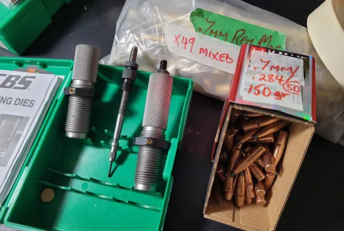 100.00 7mm Rem Mag Dies with Reloading Components Apr 25, 2026 - 7:48 AM perryvh 7mm Rem Mag Dies with brass and bullet Reloading Components, see pics, - $100.00 plus shipping.