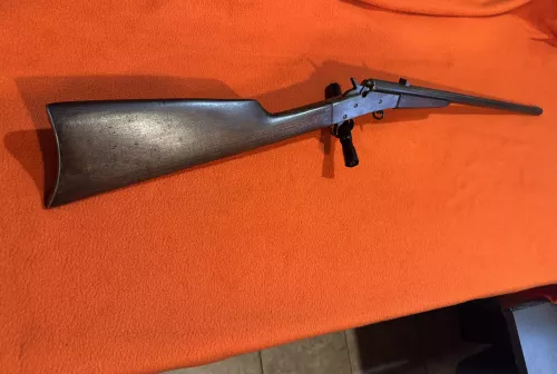 460.00 STEVENS LITTLE SCOUT 14 1/4 - FALLING BLOCK 22 LR SINGLE SHOT RIFLE Nov 15, 2025 - 5:55 AM Damoosehunter7777 SCOUT LITTLE SCOUT 14 1/2 FALLING BLOCK 22 LR SINGLE SHOT RIFLE. 18" BARREL.