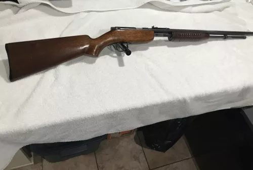 800.00 ATTENTION COLLECTORS : NOBLE MODEL 33A - 22 PUMP RIFLE MADE IN 1953-1955 Nov 7, 2025 - 6:48 AM Damoosehunter7777 ATTENTION COLLECTORS: NOBLE MODEL 33A - 22 S,L,LR PUMP 22 WITH TUBE MAG. NICE WOOD.