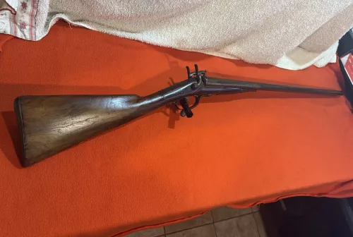 800.00 J. WHITE & SON 12 GAUGE DOUBLE PERCUSSION SHOTGUN Nov 6, 2025 - 6:31 AM Damoosehunter7777 J. WHITE & SON - 12 GAUGE DOUBLE PERCUSSION SHOTGUN. DAMASCUS TWIST BARRELS.