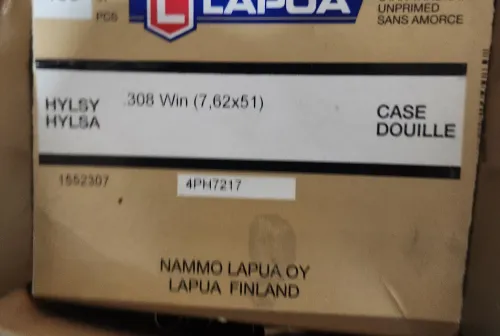 100.00 Lapua .308 Win Brass 100 pcs Feb 18, 2026 - 1:21 PM benjyhofer 100 pieces of once fired lapua .308 win brass