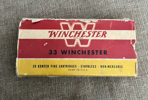 250.00 Winchester 33 caliber ammo in original box Mar 3, 2026 - 12:14 PM Muddy Full box of 33 win ammo, box isn’t the greatest, but it’s there.