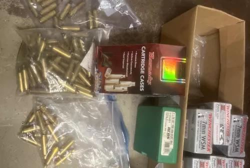400.00 7mmwsm Oct 13, 2025 - 2:35 PM pqhjz 7mm wsm brass and dies approximately 90 Winchester brass half once fired and approximately