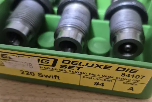 195.00 Redding 220 Swift Deluxe Die Set Apr 10, 2026 - 6:51 PM LBD For sale a used Redding Deluxe Die Set in 220 Swift Redding # 84107