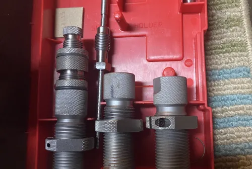 SOLD 75.00 HORNADY CUSTOM GRADE 9MM LEGER 9X21 TAPER CRIMP 3 DIE SET Jan 26, 2026 - 6:05 PM bowtie HORNADY CUSTOM GRADE 9MM LEGER 9X21 TAPER CRIMP 3 DIE SET. Very good condition.