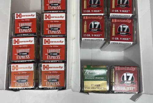 420.00 17 HMR (15 boxes) Mar 9, 2026 - 7:54 AM Huntsman108 15 boxes total of 17 HMR 13 boxes of 17 gr hornady V-Max